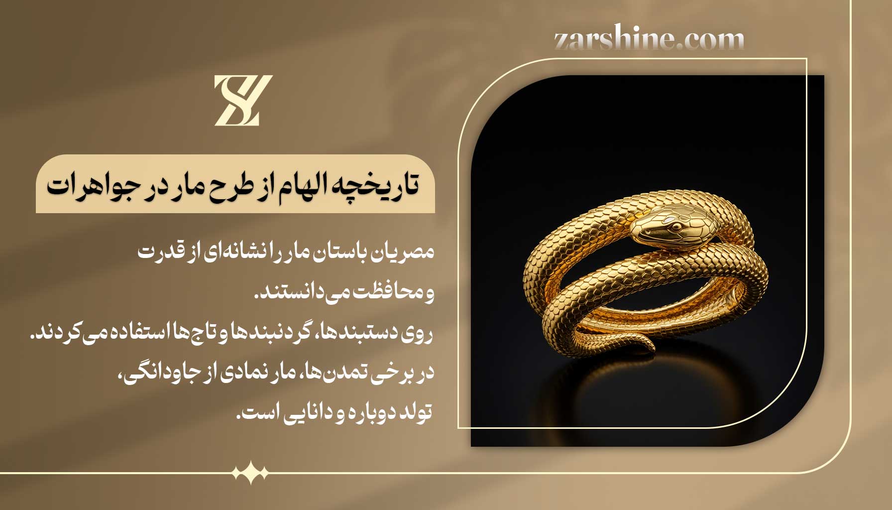 | الهام و تاریخچه | الهام از مار، نماد قدرت، محافظت، جاودانگی، تولد دوباره و دانایی | از دوران مصر باستان و ایران باستان تا طراحی مدرن امروز |